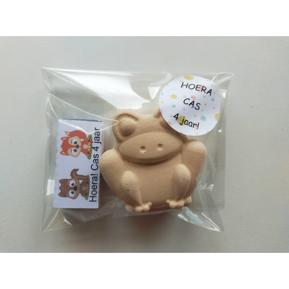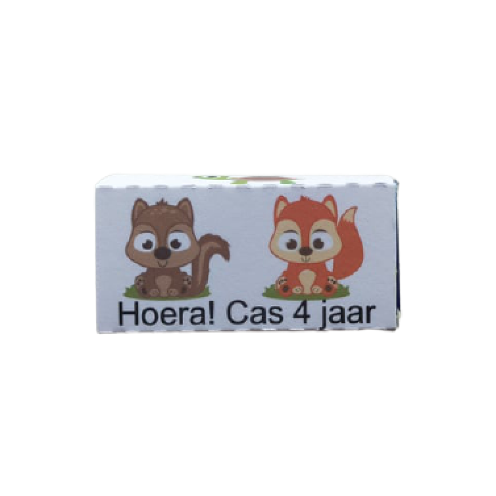 Het stoepkrijt wordt gratis verpakt in cellofaan met daarop een sticker
