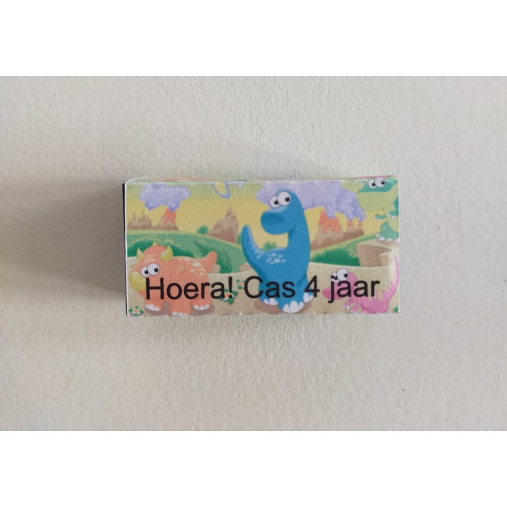 Het stoepkrijt wordt gratis verpakt in cellofaan met daarop een sticker