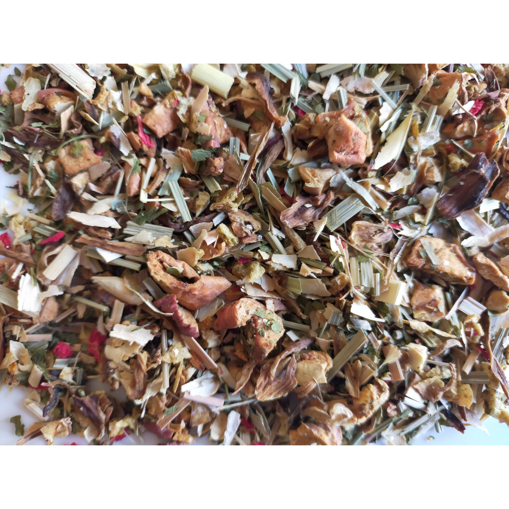 Deze thee is samengesteld uit verschillende soorten fruit en kruiden
