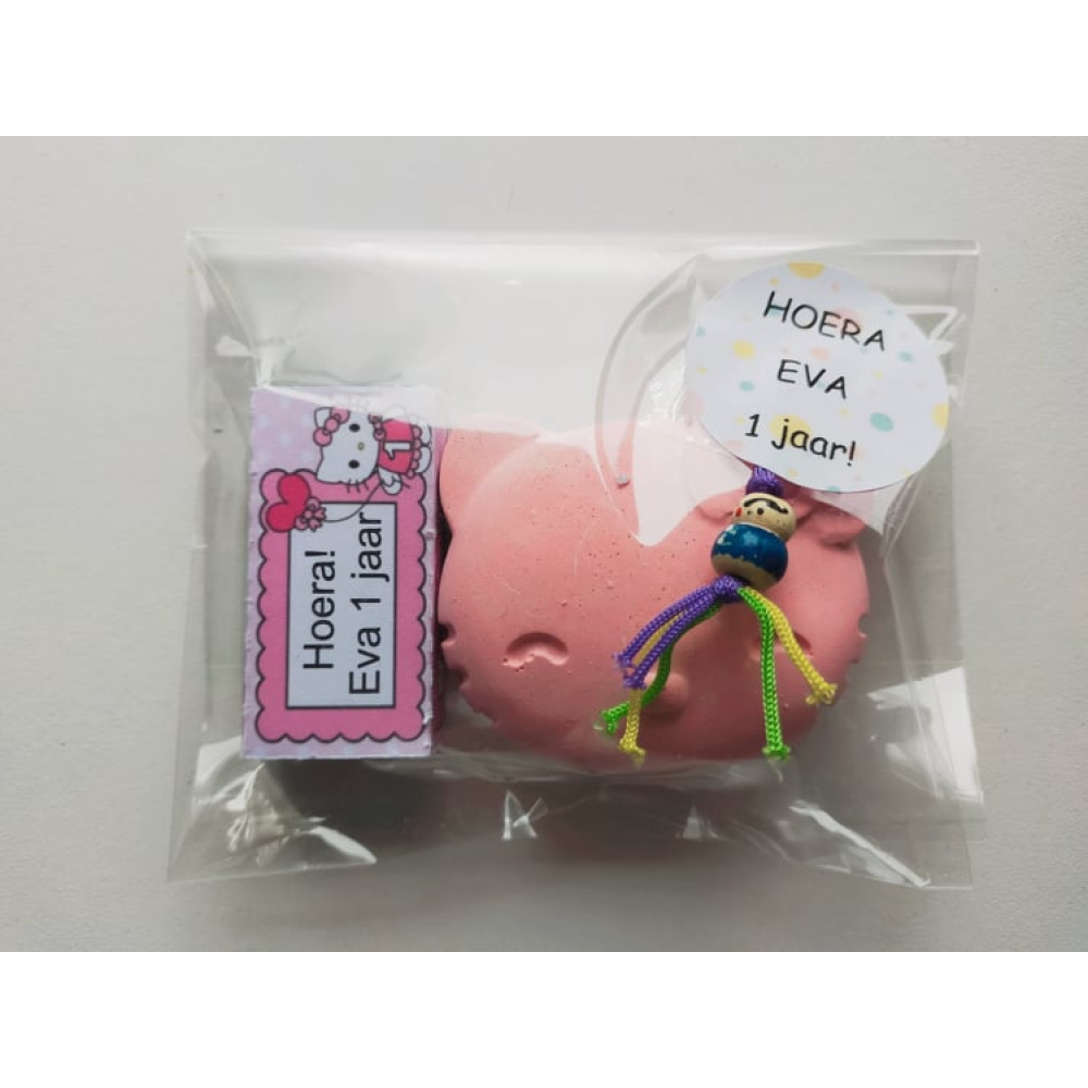 Zakjes met sticker en snoep met wikkel er los bij.