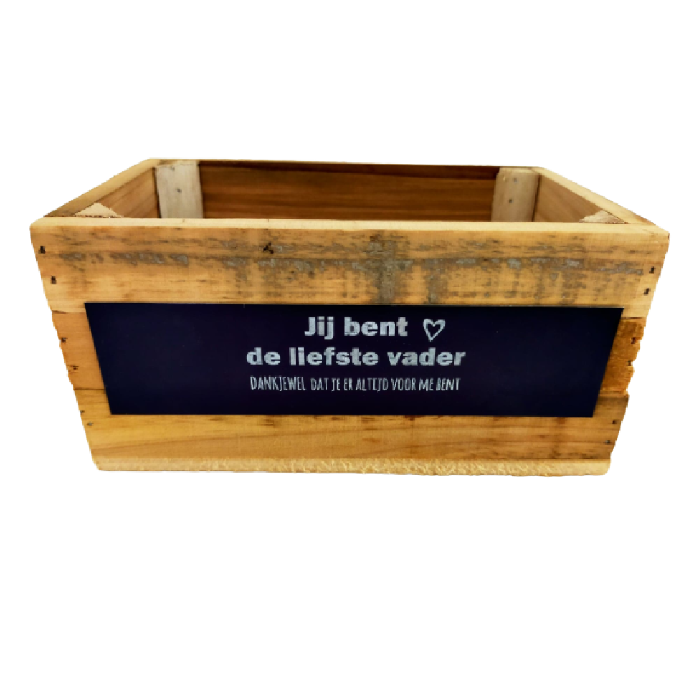 Kist hout met aluminium plaatje