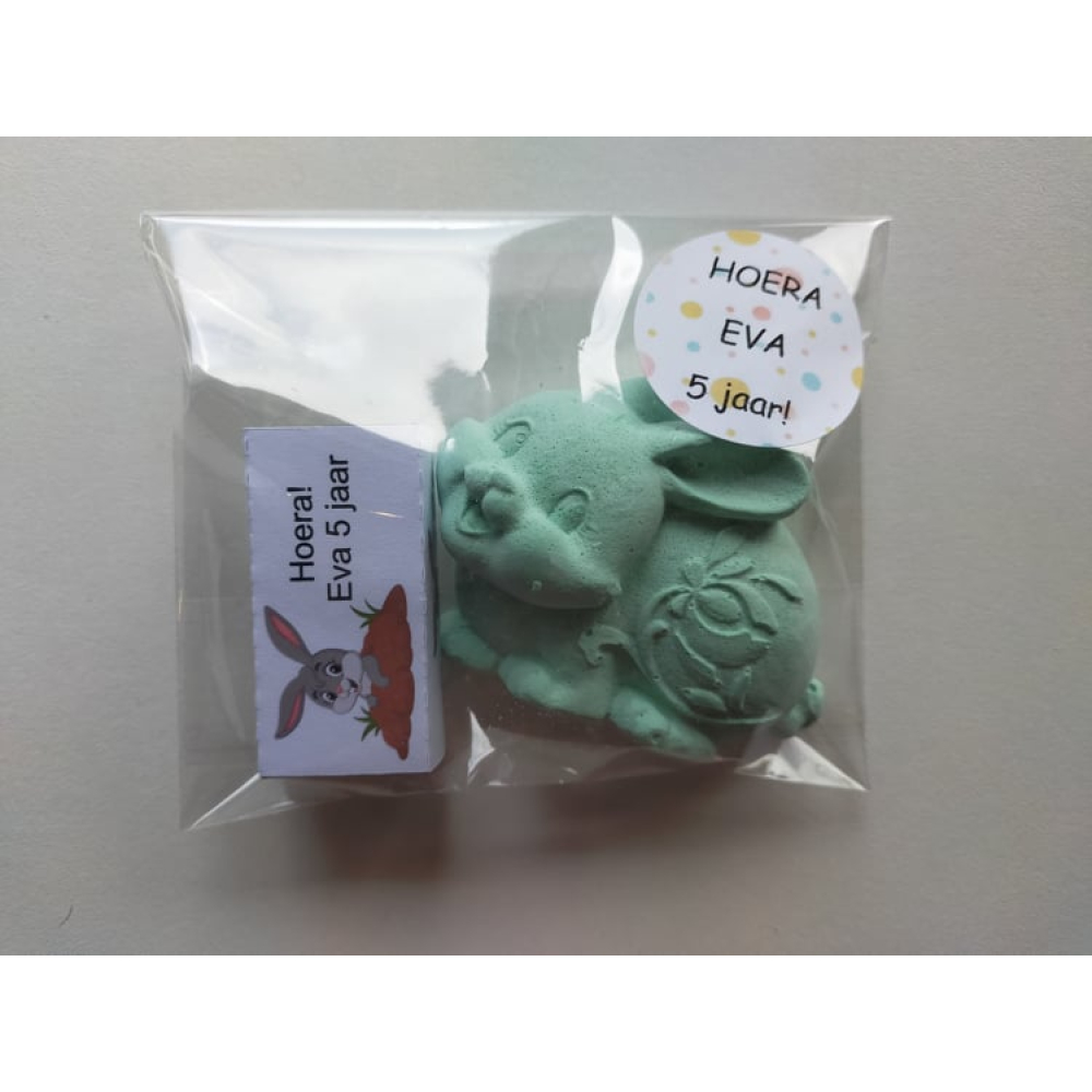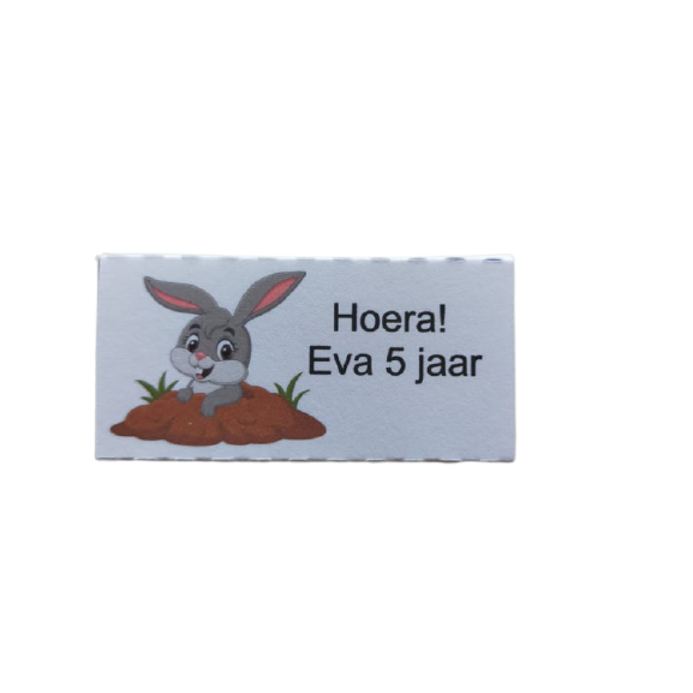 Het stoepkrijt wordt gratis verpakt in cellofaan met daarop een sticker