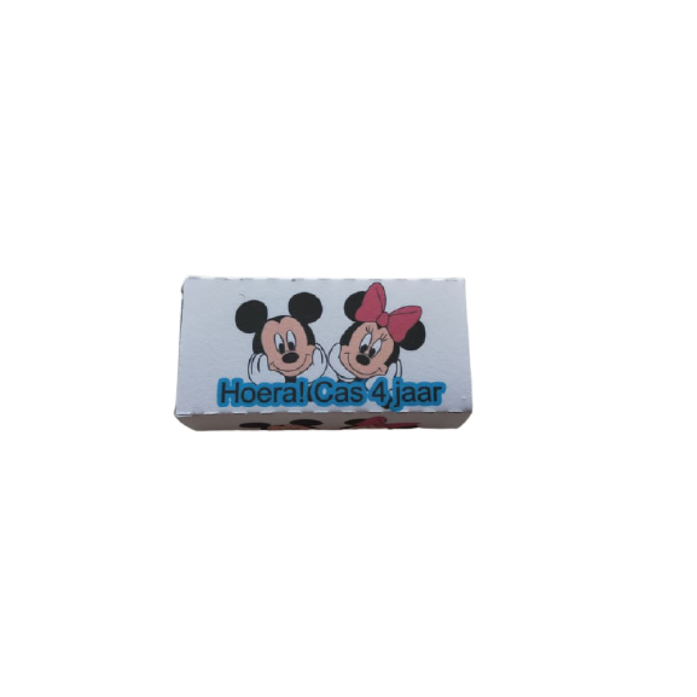 Het stoepkrijt wordt gratis verpakt in cellofaan met daarop een sticker