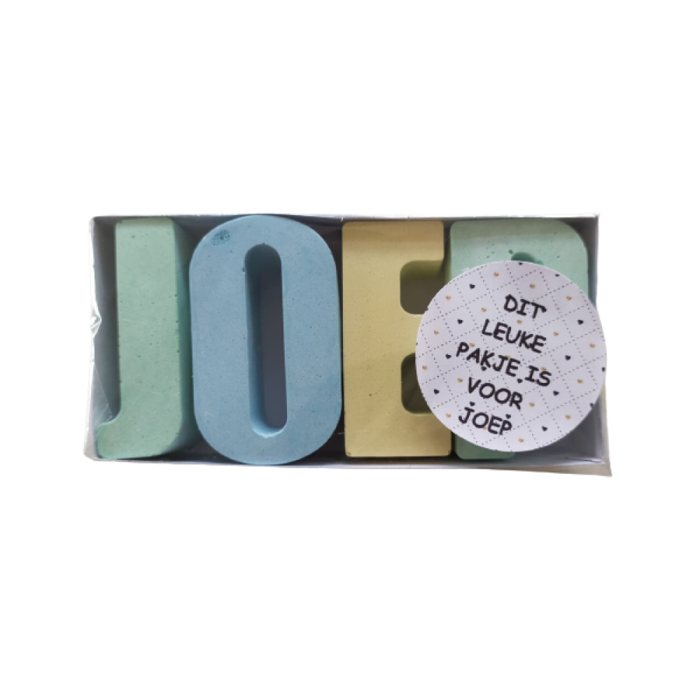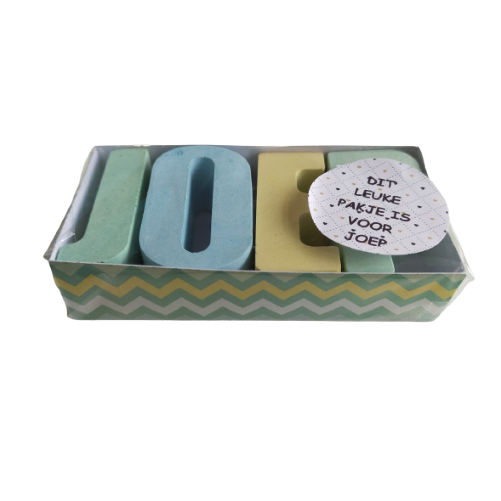 Namen worden verpakt in gekleurd karton (verschillende motieven) en folie.