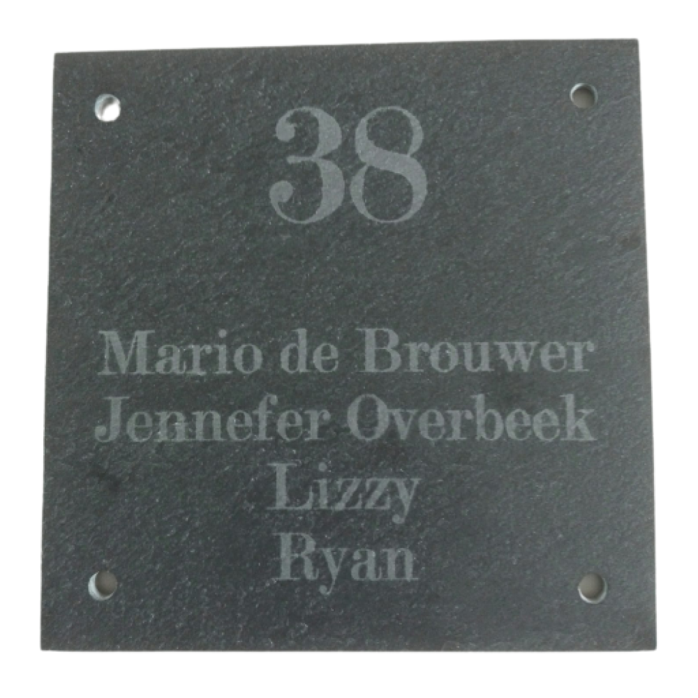 - De namen, huisnummer en/of afbeeldingen worden geëtst.