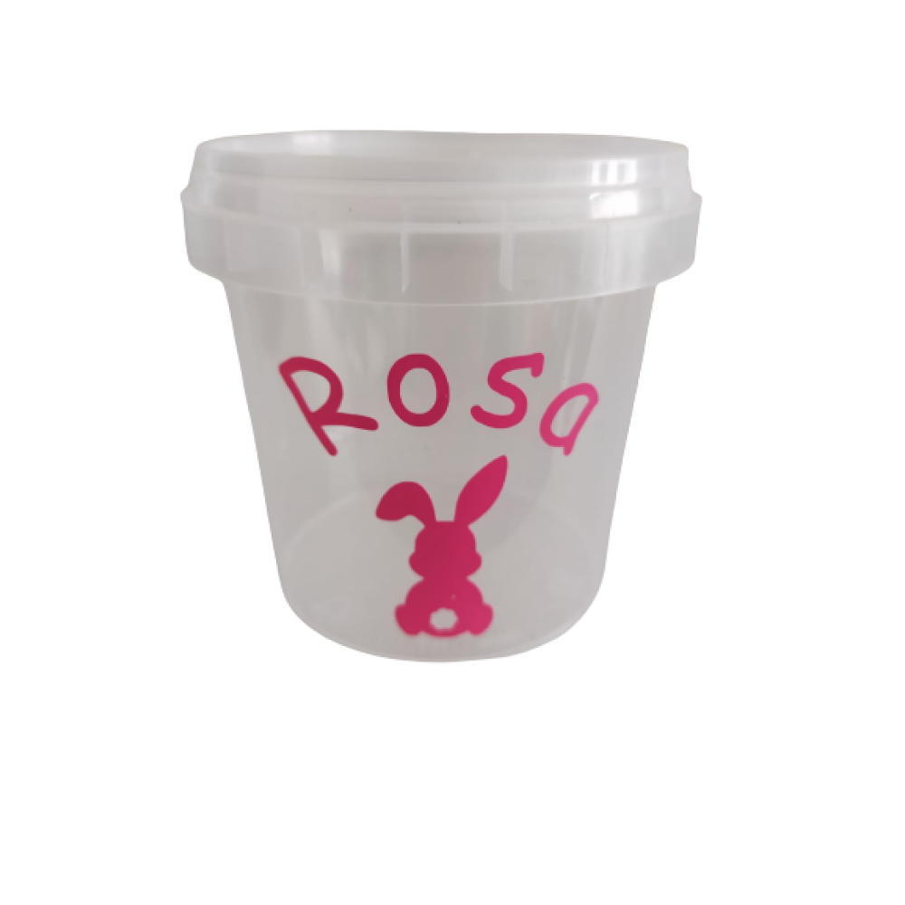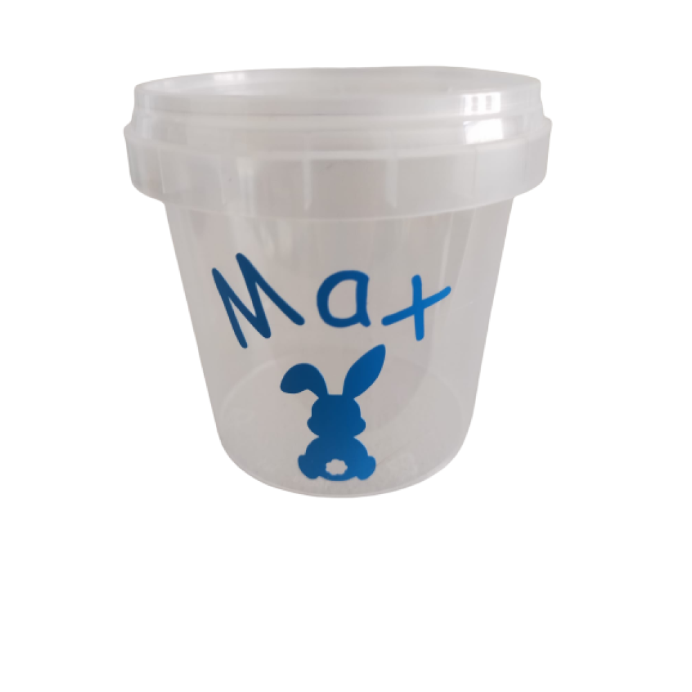 Bedrukking: Naam en paashaasje.