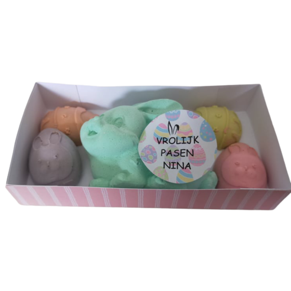 Je kiest voor de kleur van het konijn, paaseitjes worden in 4 kleuren toegevoegd.