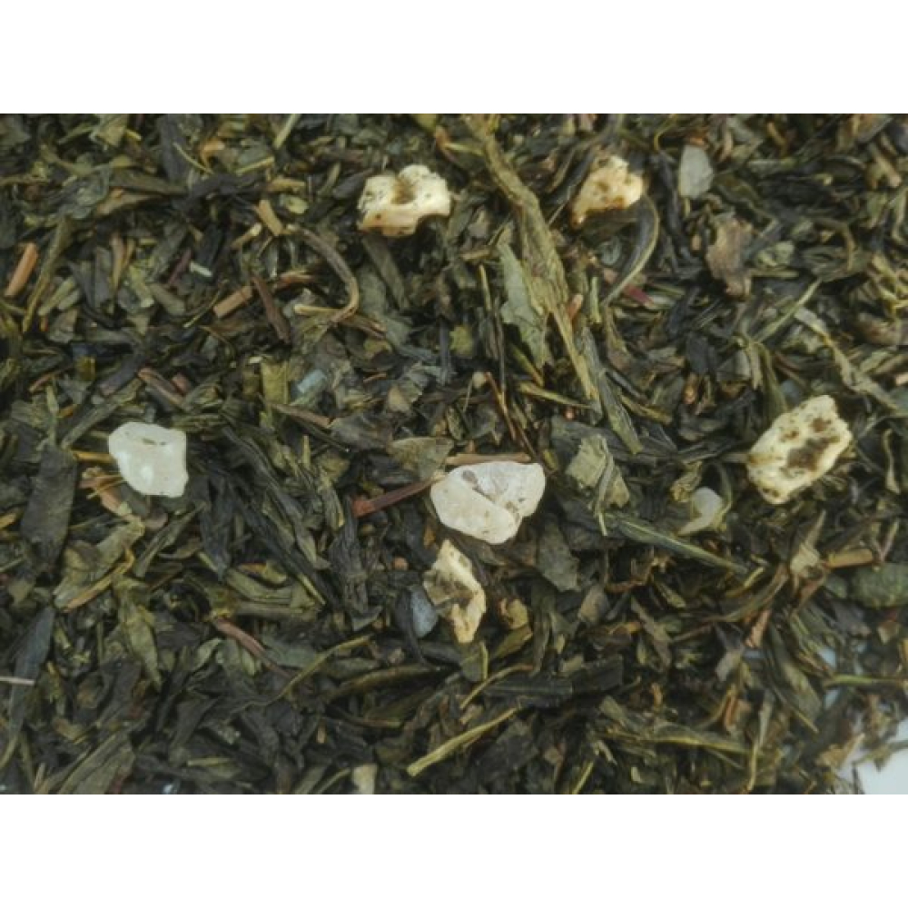 In deze groene thee zitten naast meloen ook stukjes ananas.