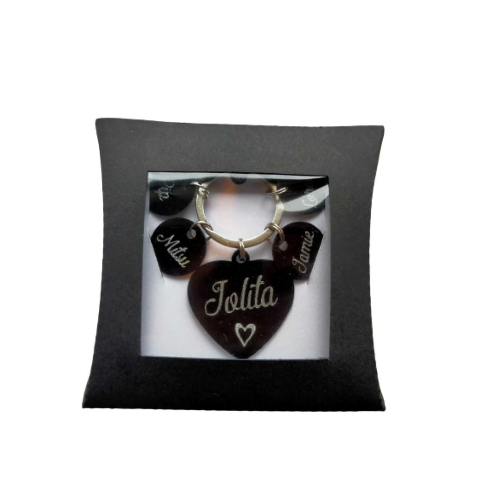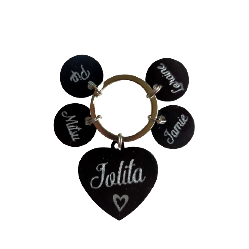 - Afmeting rondje diam. 10 mm. (grote namen kunnen niet, tip: alleen beginletter van de voornaam of een kleine afbeelding zoals een hartje)