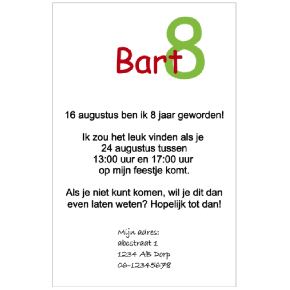 Uitnodiging Unieke uitnodiging zelf ontworpen Afmeting: 10,5 x 15 cm. (a5 gevouwen) inclusief envelop